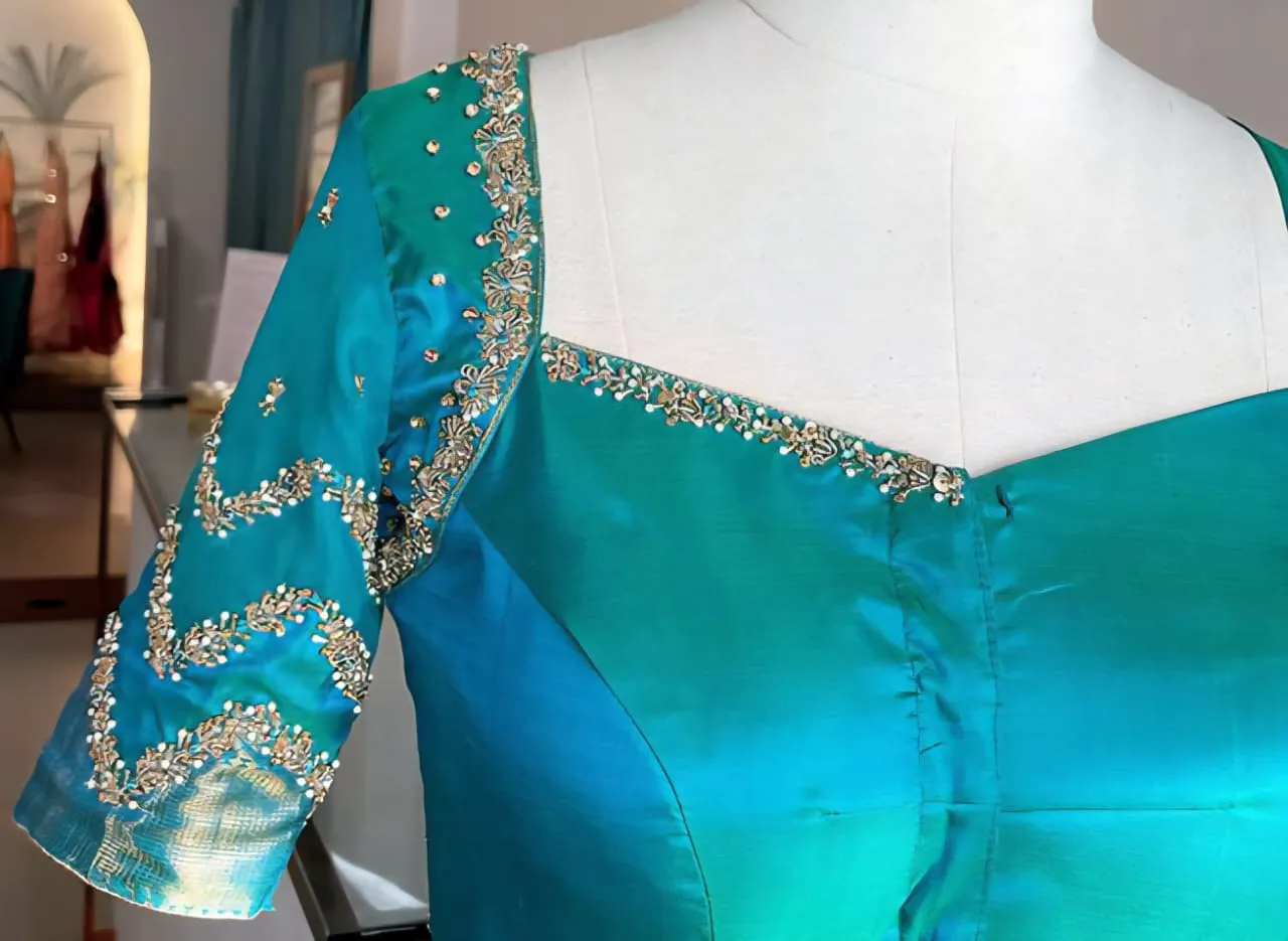 Why Choose Online Sky Blue Trending Maggam Work Blouse Set Under ₹4000 Custom Sizes Available?