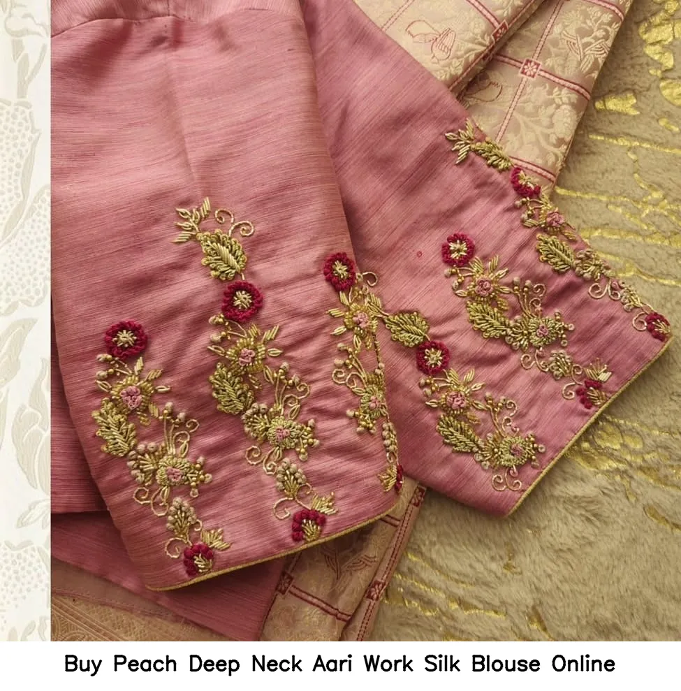 Why Choose Buy Peach Deep Neck Aari Work Silk Blouse Online?
