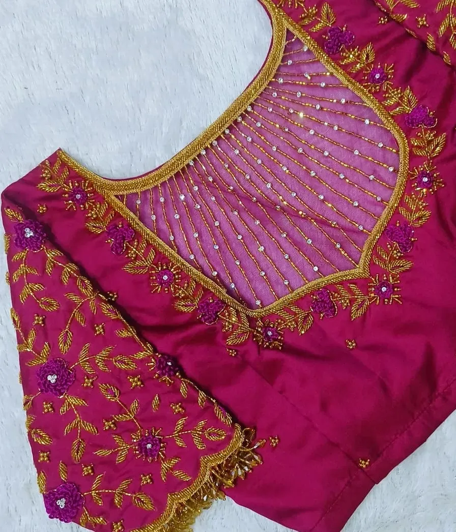 Buy Pink Maggam Aari Work Blouse Online Latest Traditional Designer Style Features and Benefits