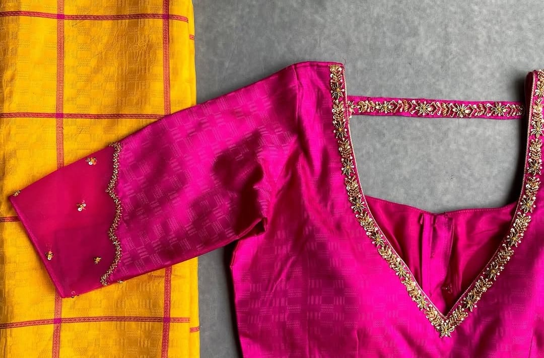 Pair this charming blouse with a pastel or contrasting saree to complete your ethereal look. Add statement earrings and soft makeup to elevate your outfit further.
