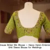 The Chartreuse Bridal Silk Blouse – Heavy Hand-Embroidered Grid Sleeve Blouse for Weddings is designed for the modern bride. It comes in a variety of sizes and colors, ensuring a perfect fit for every individual.