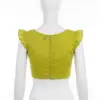 Chartreuse Cotton-Linen Readymade Blouse | Ruffle Sleeve Crop Top for Sarees | Solid Lime Green Ethnic Blouse with Back Zip Closure