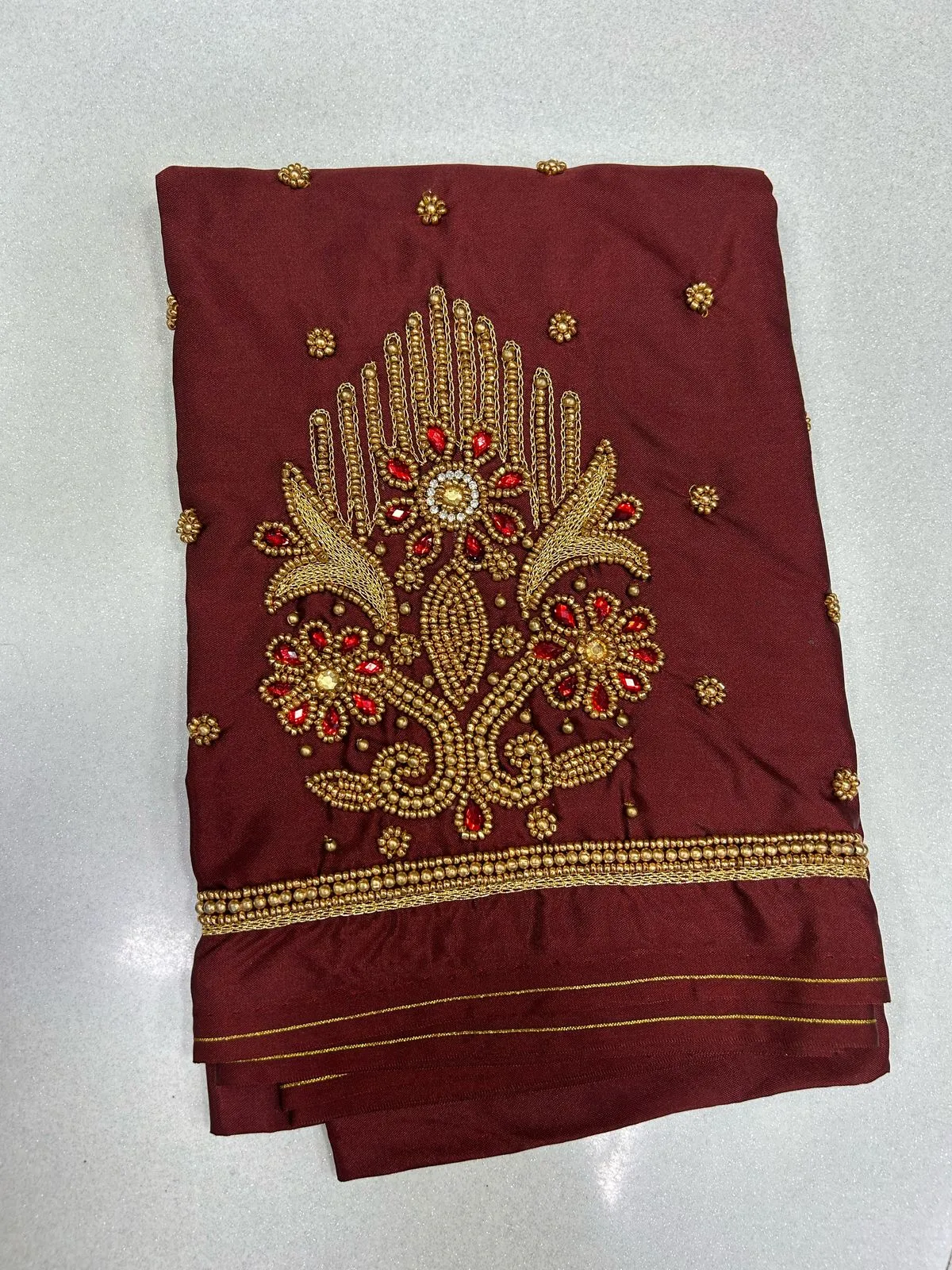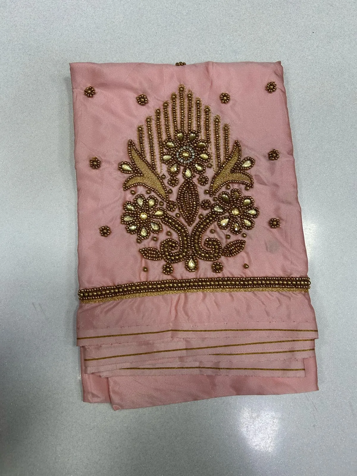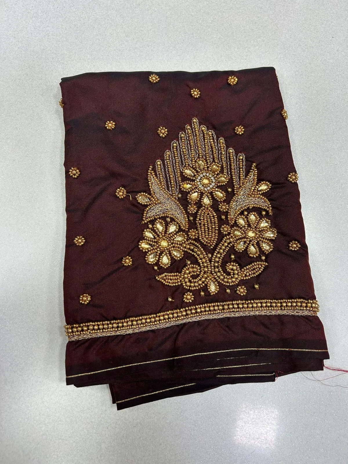 Q: What is the material quality of the Deal – Graceful Maggam Buti Work Blouse at Special Discount?
