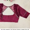 Chic Wine Designer Neck Blouse – Premium Zardosi Silk with Handcrafted Maggam Aari Detailing is the perfect addition to your wardrobe. This exquisite blouse offers a unique blend of elegance and comfort. Moreover, it features intricate handcrafted detailing that enhances its beauty. You will love how it complements various outfits, making it a versatile choice for any occasion.