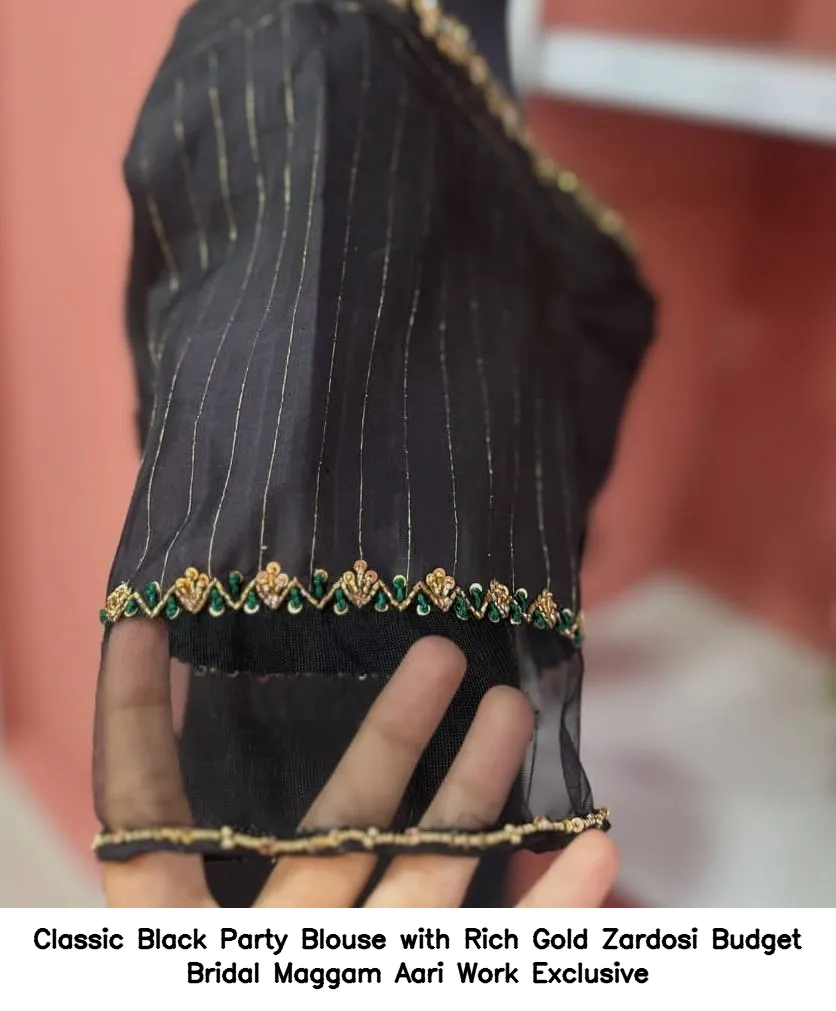 Why Choose Classic Black Party Blouse with Rich Gold Zardosi – Budget Bridal Maggam Aari Work Exclusive?