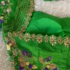 Product Name: Classic Green Silk Blouse with Elegant Designer Neck