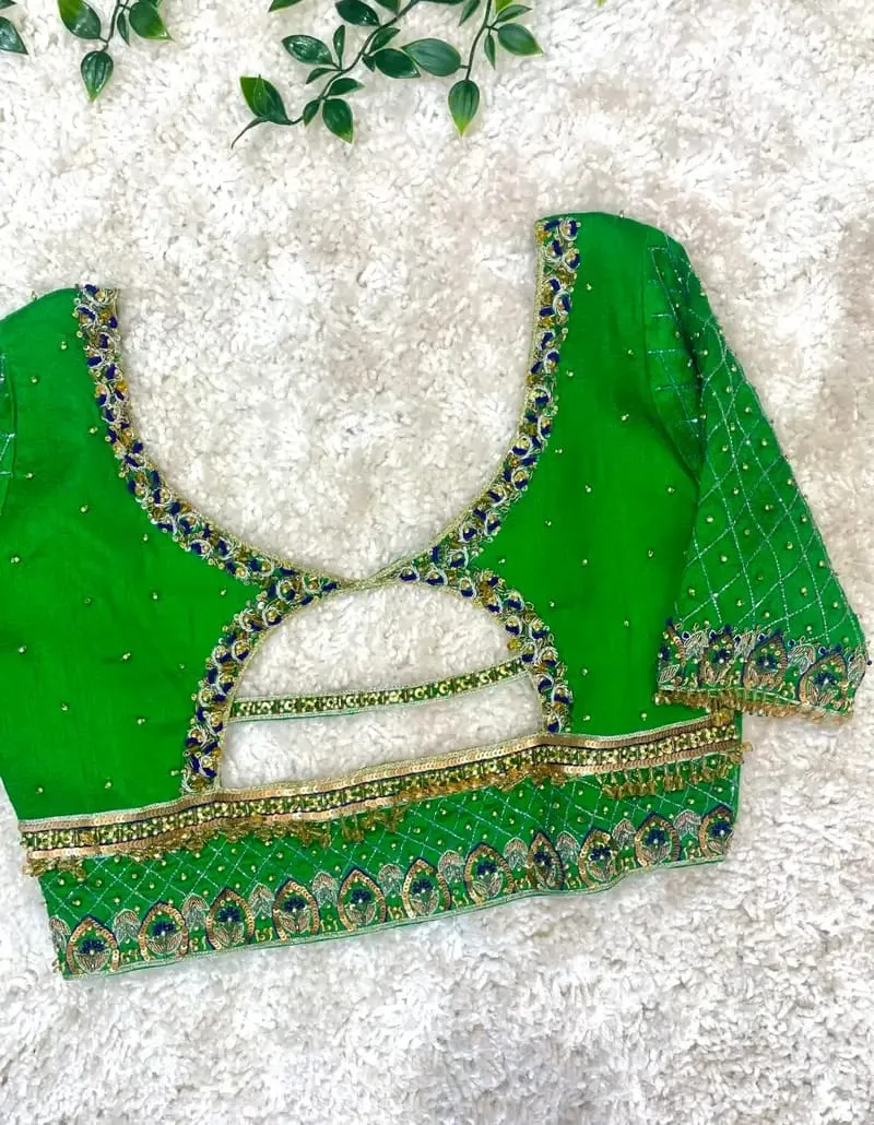 Product Name: Classic Green Silk Maggam Work Blouse Bridal Temple Wear
