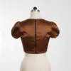 Product Name: Coffee Brown Puff Sleeve Saree Blouse Ready to Wear High Neck Designer Blouse for Women