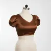 Product Name: Coffee Brown Puff Sleeve Saree Blouse Ready to Wear High Neck Designer Blouse for Women