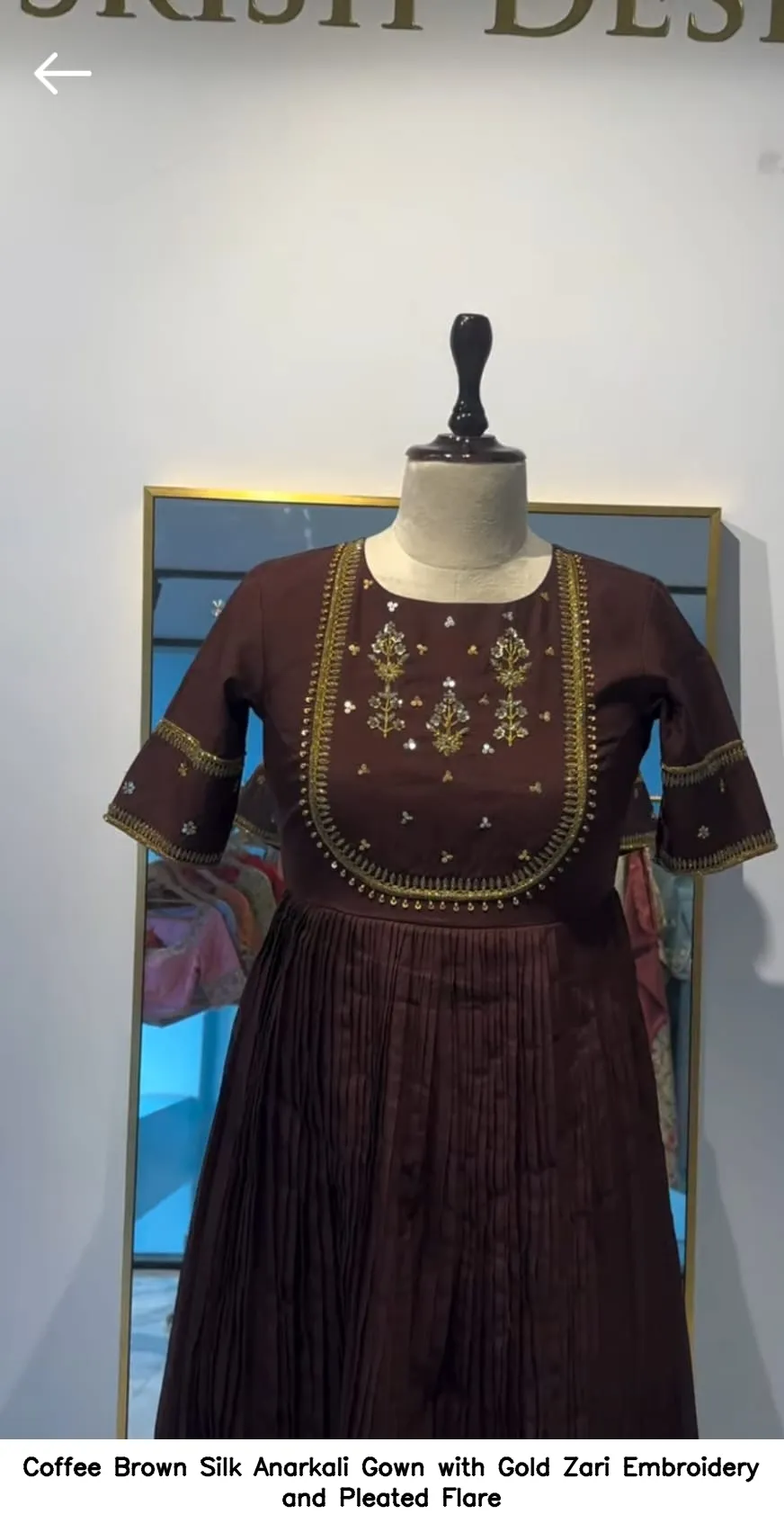 Why Choose Coffee Brown Silk Anarkali Gown with Gold Zari Embroidery and Pleated Flare?