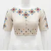Product Name: Cream Raw Silk Embroidered Blouse | Ethnic Mandala Motif Elbow Sleeve Crop Top