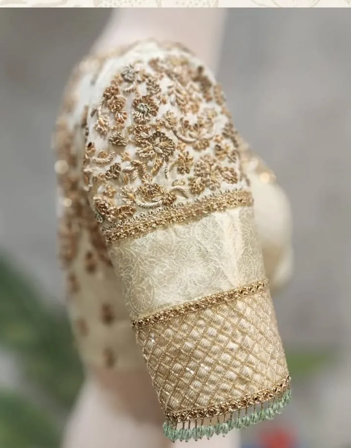 Product Name: Cream Zardosi Maggam Work Blouse Designs That Will Elevate Your Bridal Look