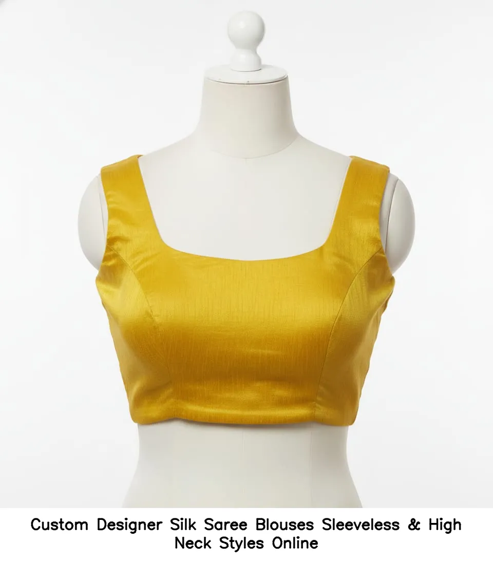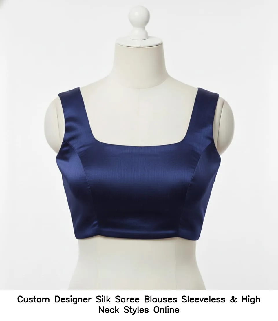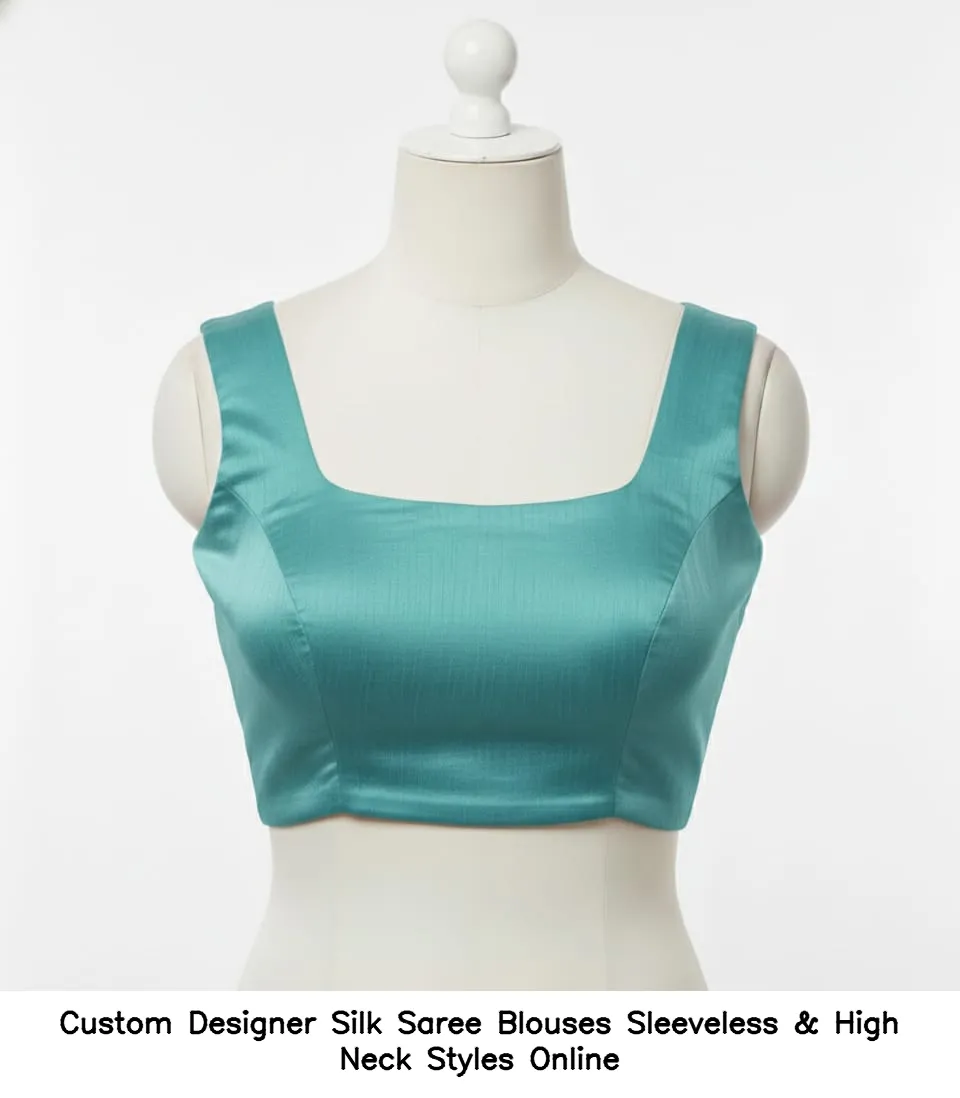 Custom Designer Silk Saree Blouses – Sleeveless & High Neck Styles Online offer elegance and style. These blouses enhance your saree look effortlessly. Moreover, you can choose from various sizes and colors to match your personality.