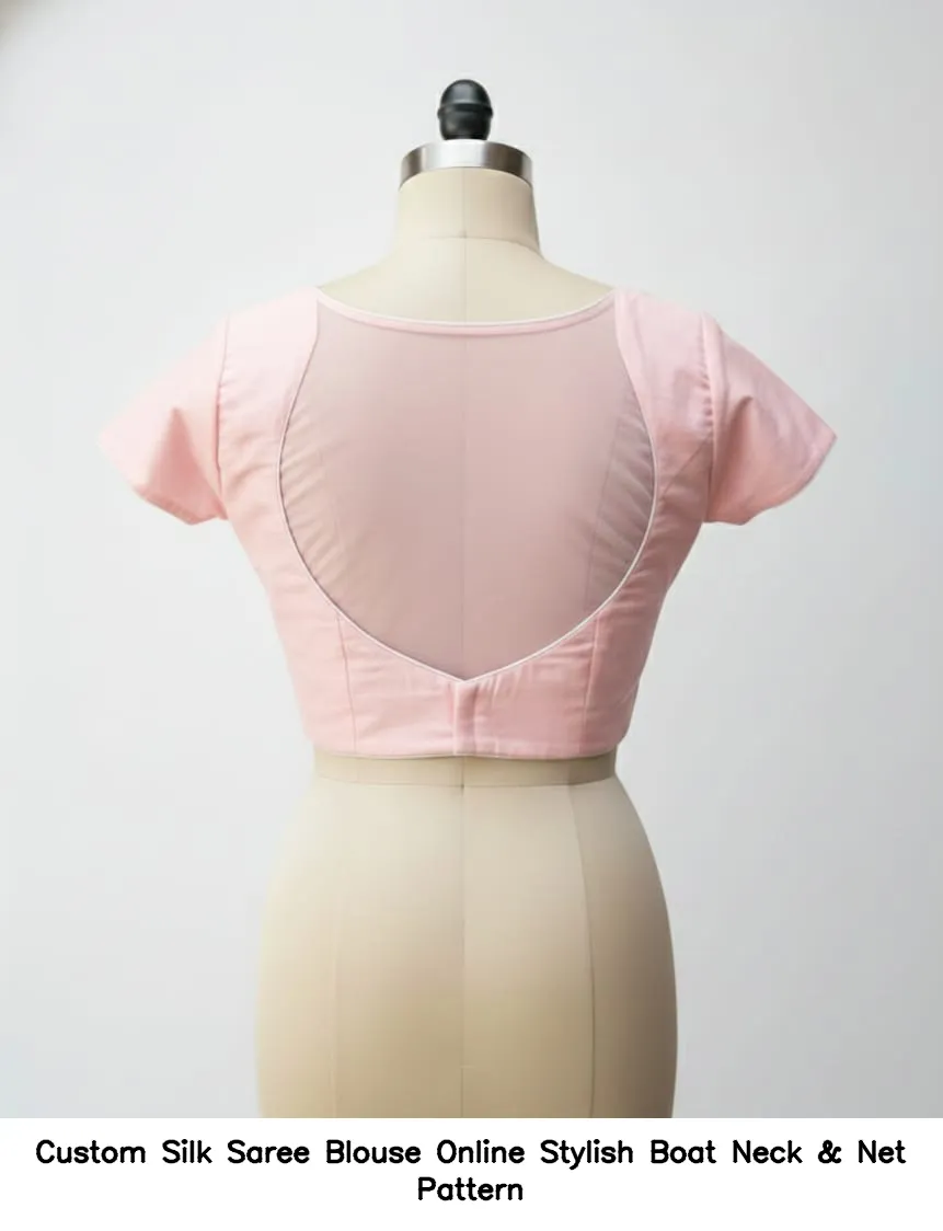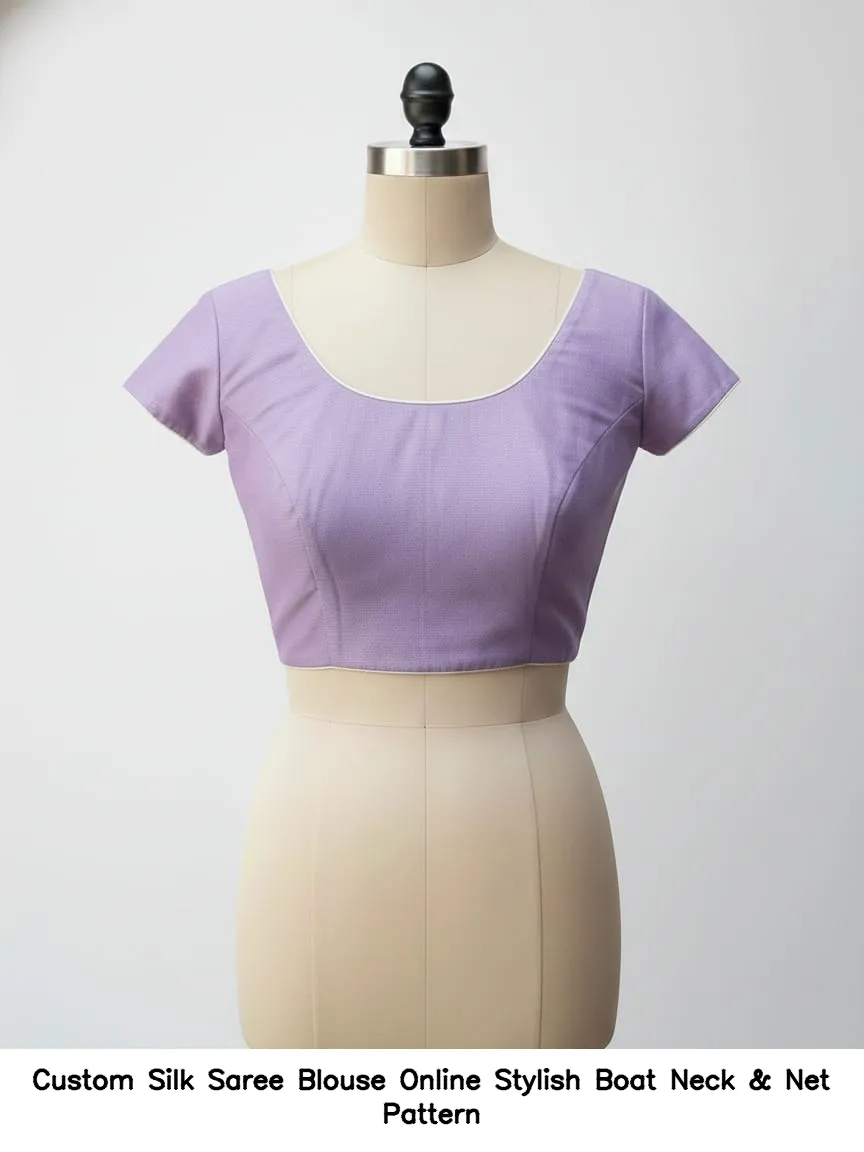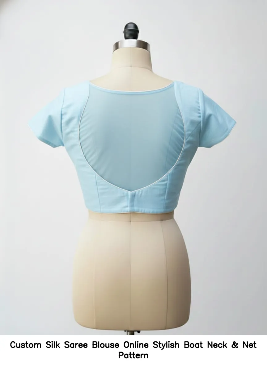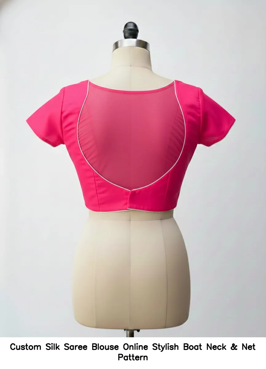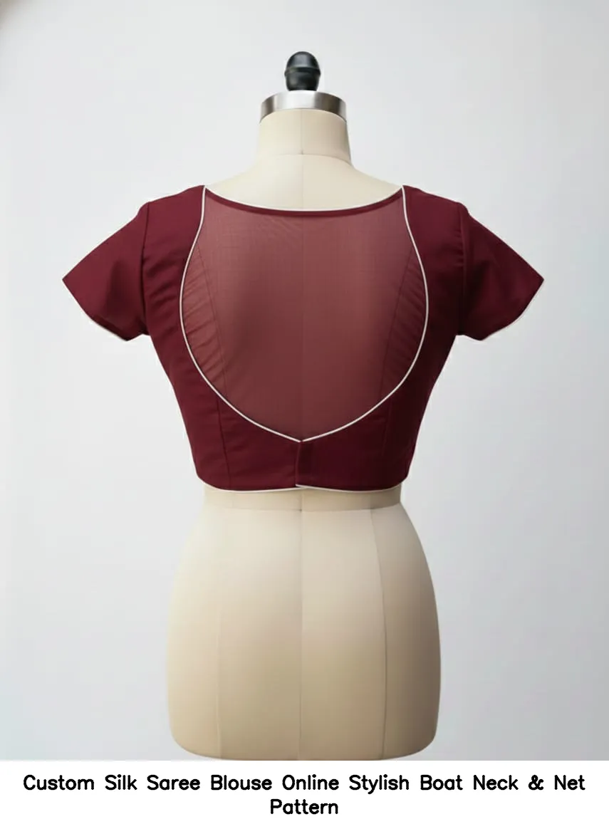 Why Choose Custom Silk Saree Blouse Online – Stylish Boat Neck & Net Pattern?