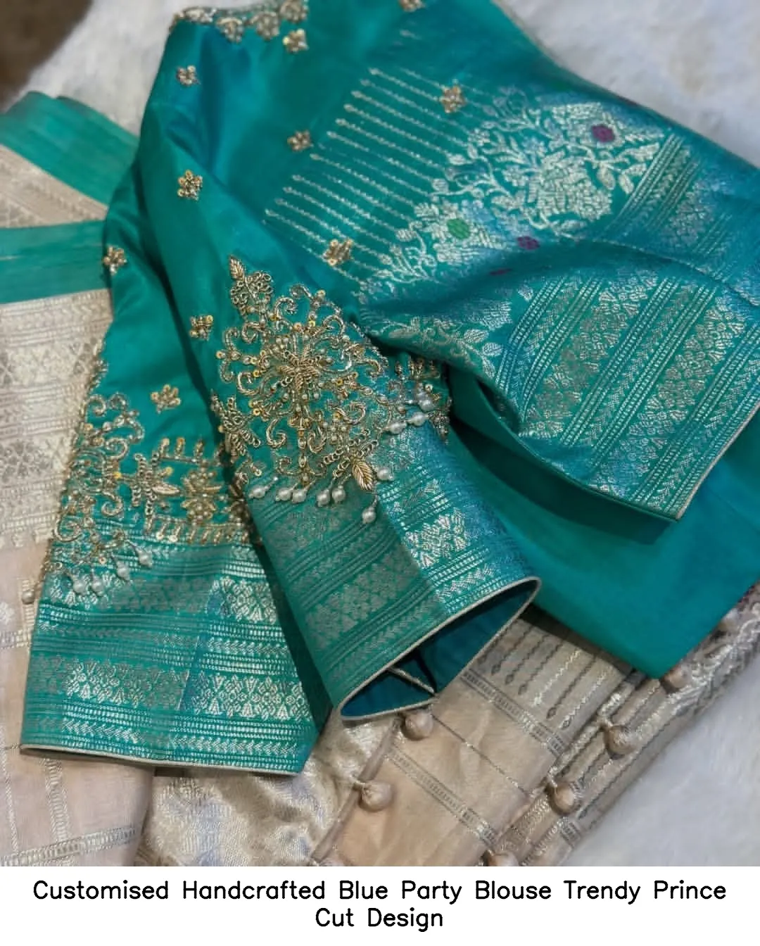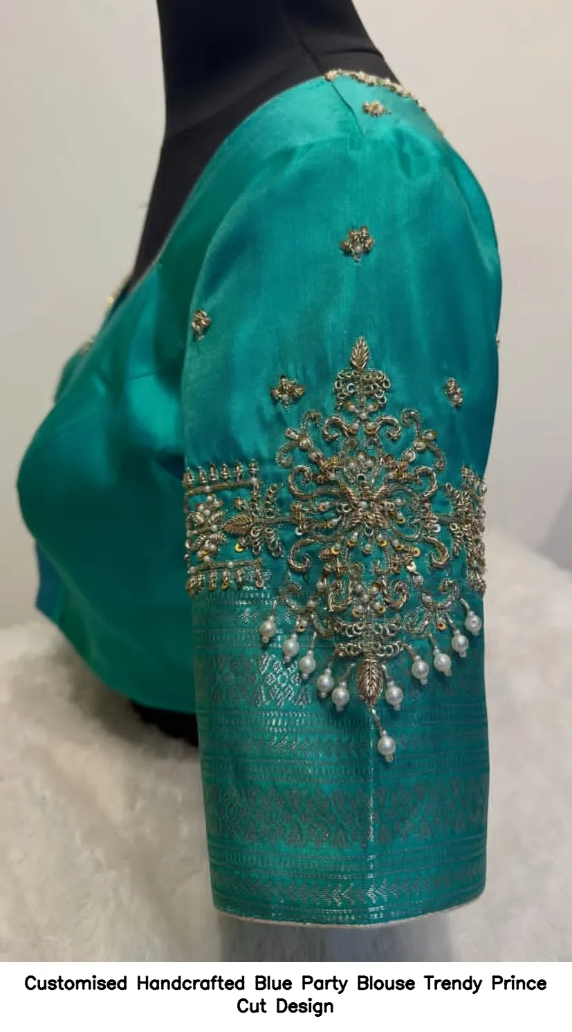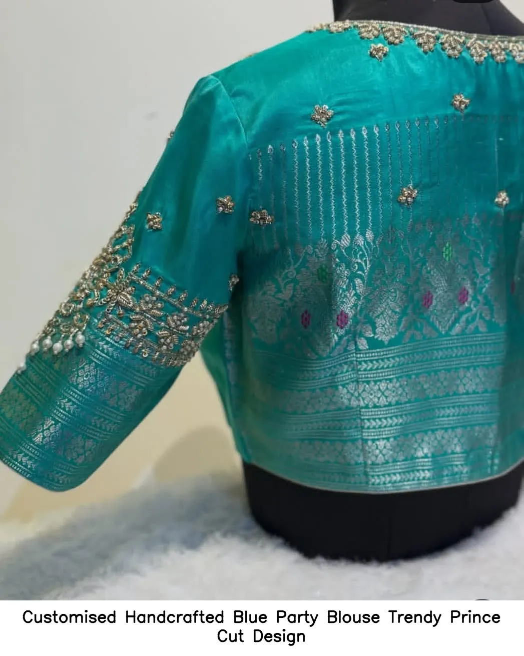 Customised Handcrafted Blue Party Blouse – Trendy Prince Cut Design
