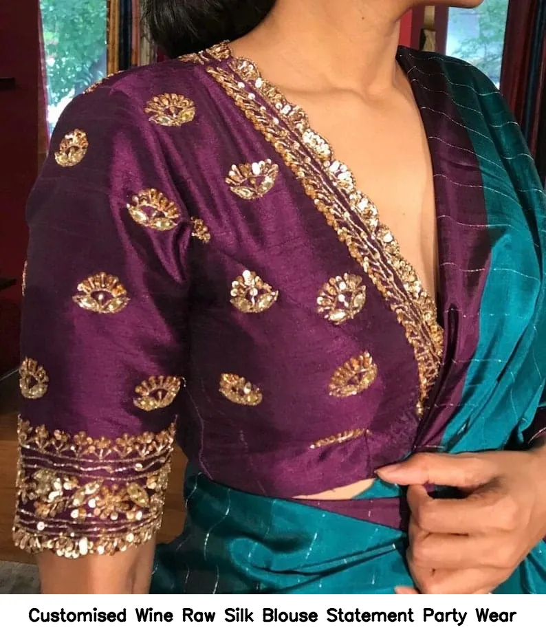Customised Wine Raw Silk Blouse – Statement Party Wear