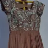 Customized Rust Brown Aari Work Long Frock | Latest Designer Gown