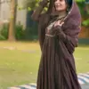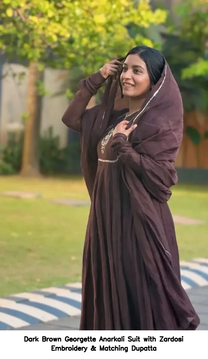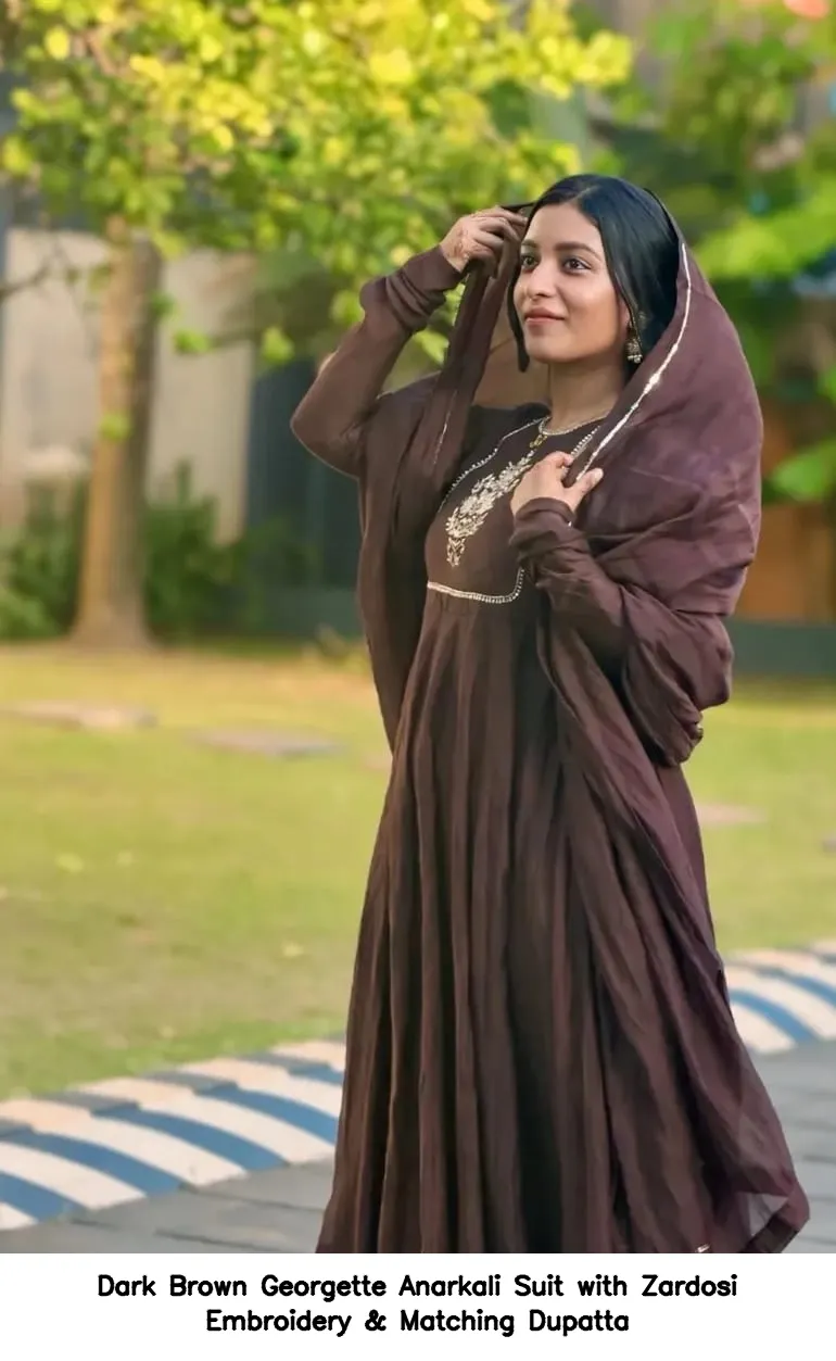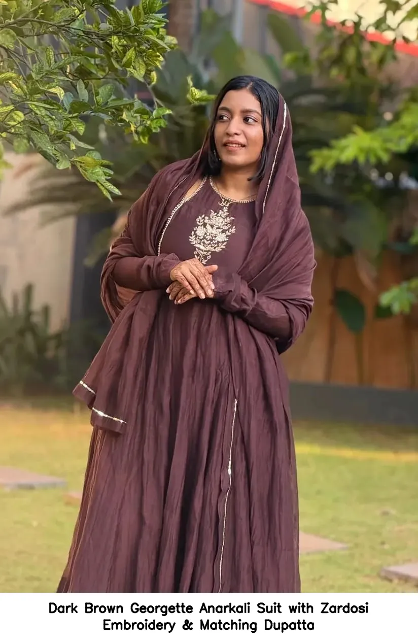 ​​​​Dark Brown Georgette Anarkali Suit with Zardosi Embroidery & Matching Dupatta