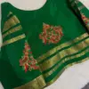 Dark Green Silk Blouse | Trendy Handcrafted Zardosi Design | Budget-Friendly