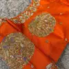 Product Name: Dazzling Orange Zardosi Blouse Stunning Peacock Maggam Embroidery Unforgettable Style