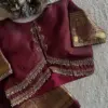 Product Name: Deep Maroon High Neck Maggam Work Blouse Premium Bridal Couture