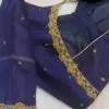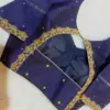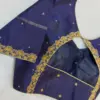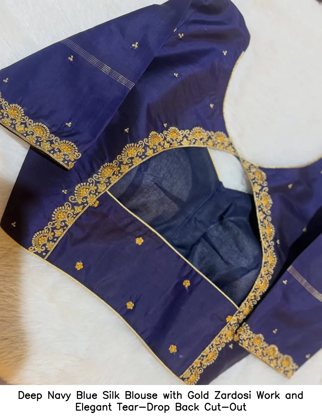 Product Name: Deep Navy Blue Silk Blouse with Gold Zardosi Work and Elegant Tear-Drop Back Cut-Out