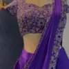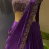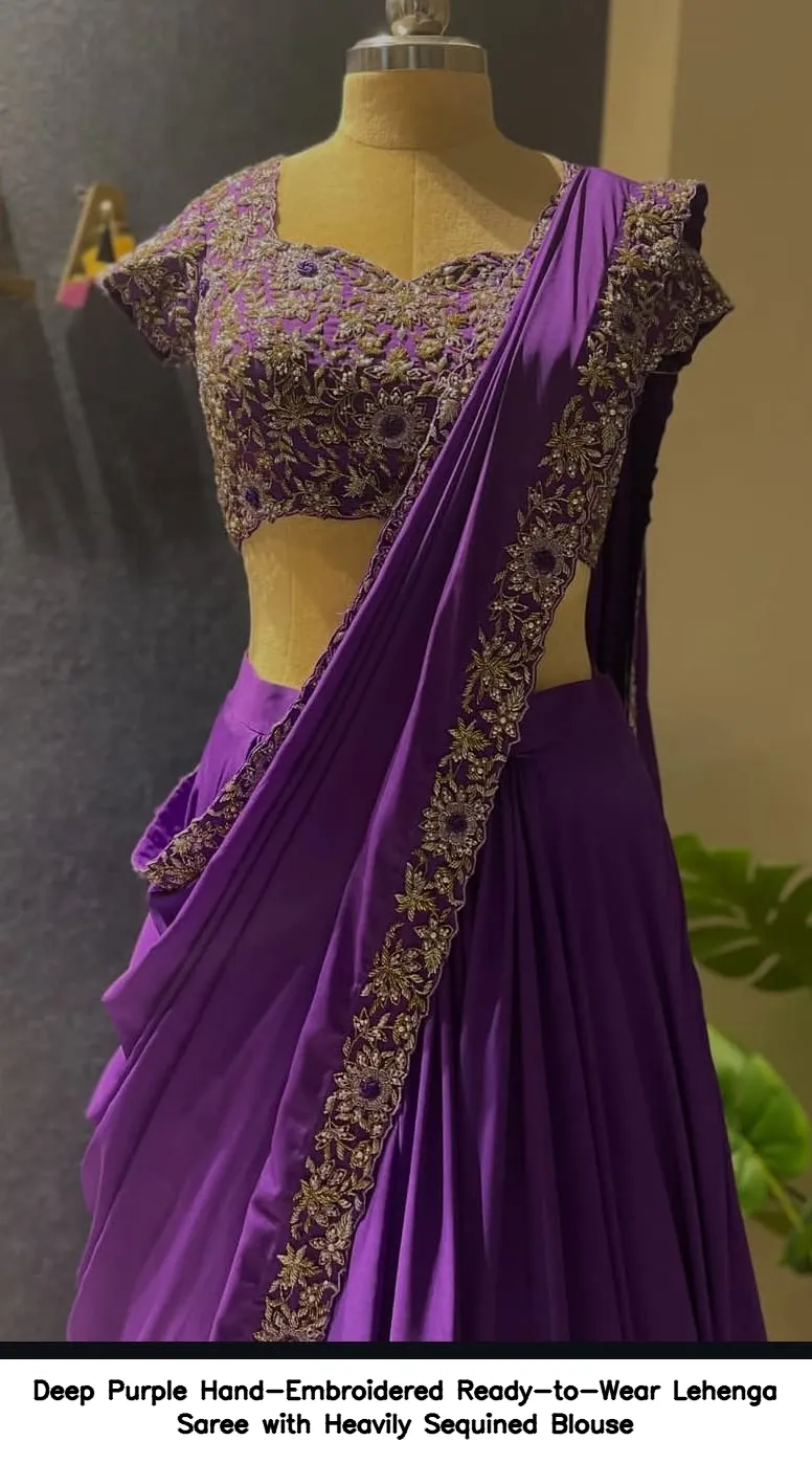 Product Name: Deep Purple Hand-Embroidered Ready-to-Wear Lehenga Saree with Heavily Sequined Blouse