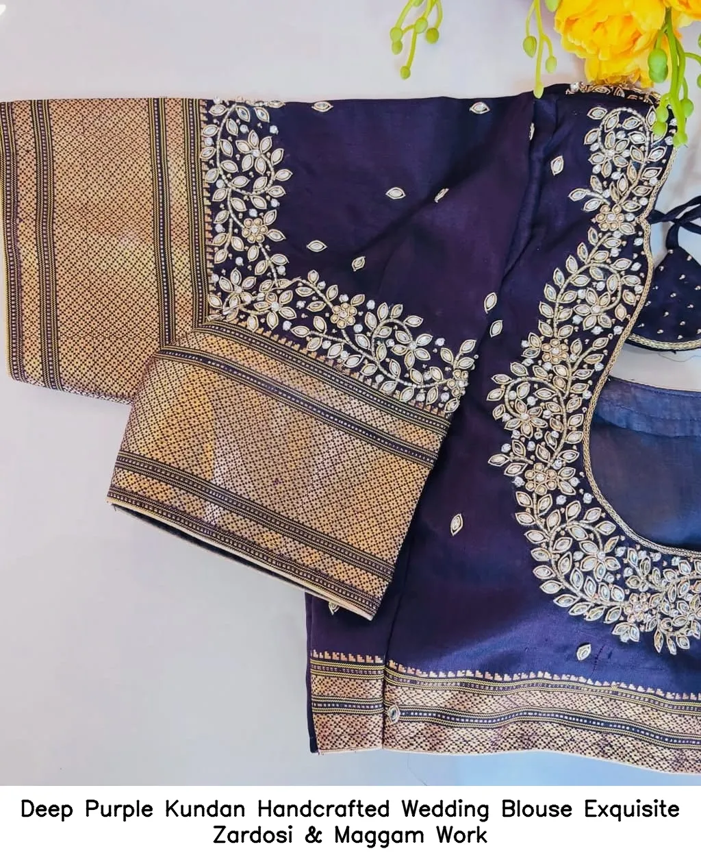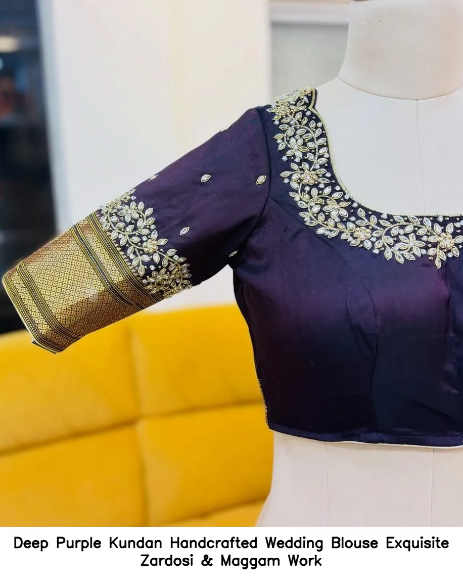 Why Choose Deep Purple Kundan Handcrafted Wedding Blouse – Exquisite Zardosi & Maggam Work?