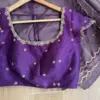 Product Name: Deep Purple Zardosi Work Blouse | Designer Silk Saree Blouse with Scalloped Neckline
