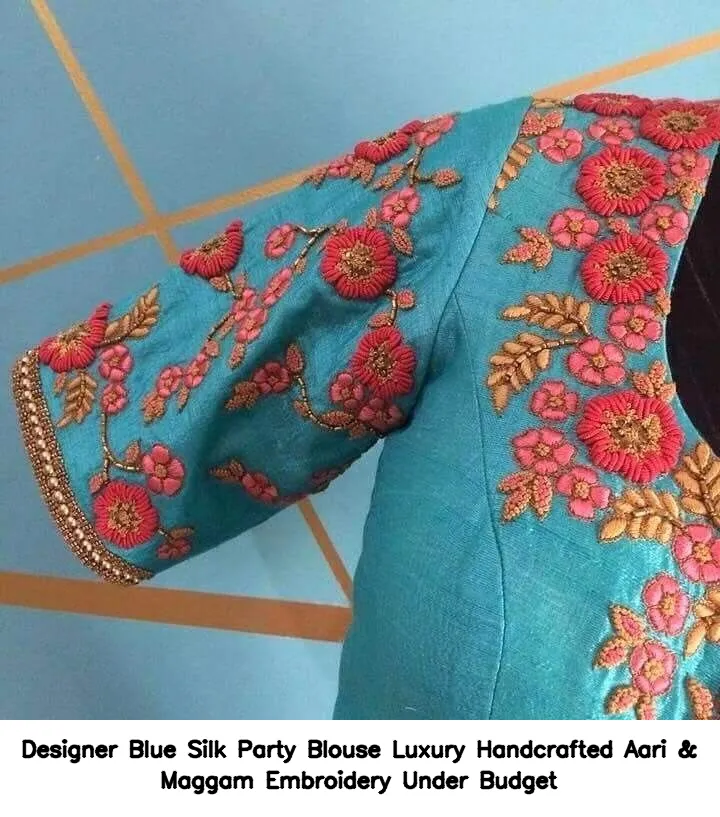 Designer Blue Silk Party Blouse – Luxury Handcrafted Aari & Maggam Embroidery Under Budget Features and Benefits