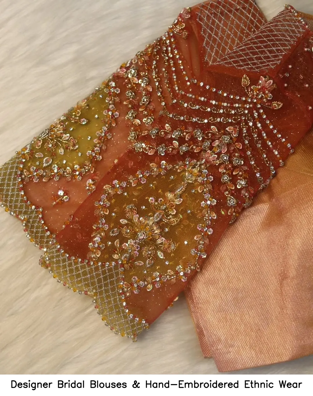 Q: What materials are used in your Designer Bridal Blouses & Hand-Embroidered Ethnic Wear?