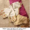 Designer Cream Silk Blouse with Zardosi Cutwork – Handcrafted Maggam & Aari Work