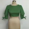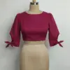 Product Name: Designer High Neck Silk Crop Top Blouse with Slit Sleeves | Affordable Ethnic Wear