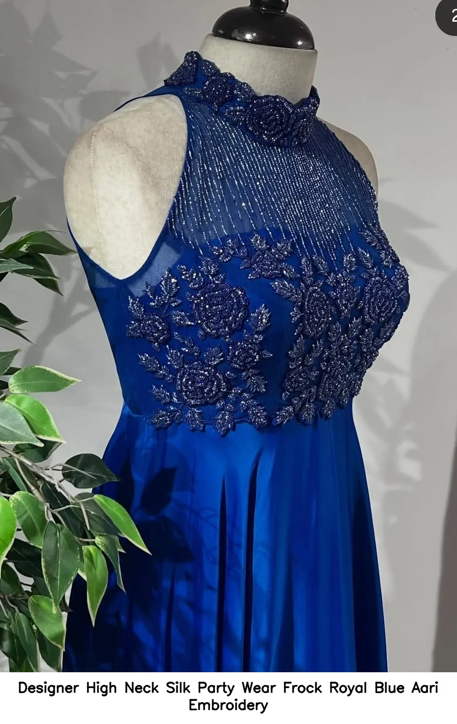 Why Choose Designer High Neck Silk Party Wear Frock – Royal Blue Aari Embroidery?