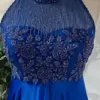Designer High Neck Silk Party Wear Frock – Royal Blue Aari Embroidery offers elegance and sophistication. Moreover, the exquisite Aari embroidery adds a unique charm. This frock is perfect for parties and special occasions, making you stand out effortlessly.