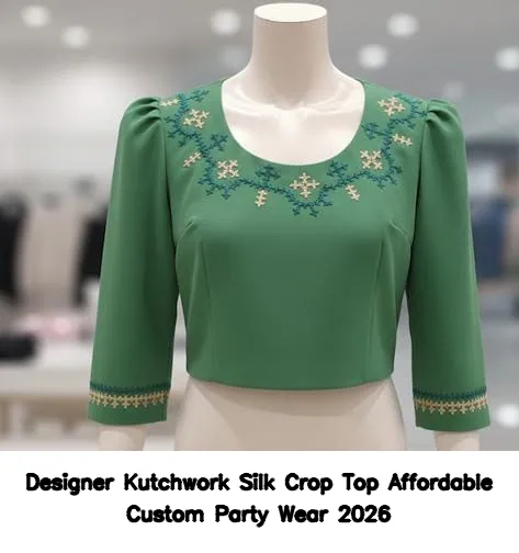 Designer Kutchwork Silk Crop Top – Affordable Custom Party Wear 2026 offers unique elegance. This stylish blouse enhances your wardrobe. Moreover, it is perfect for parties and special occasions. You will feel confident and fashionable wearing it.