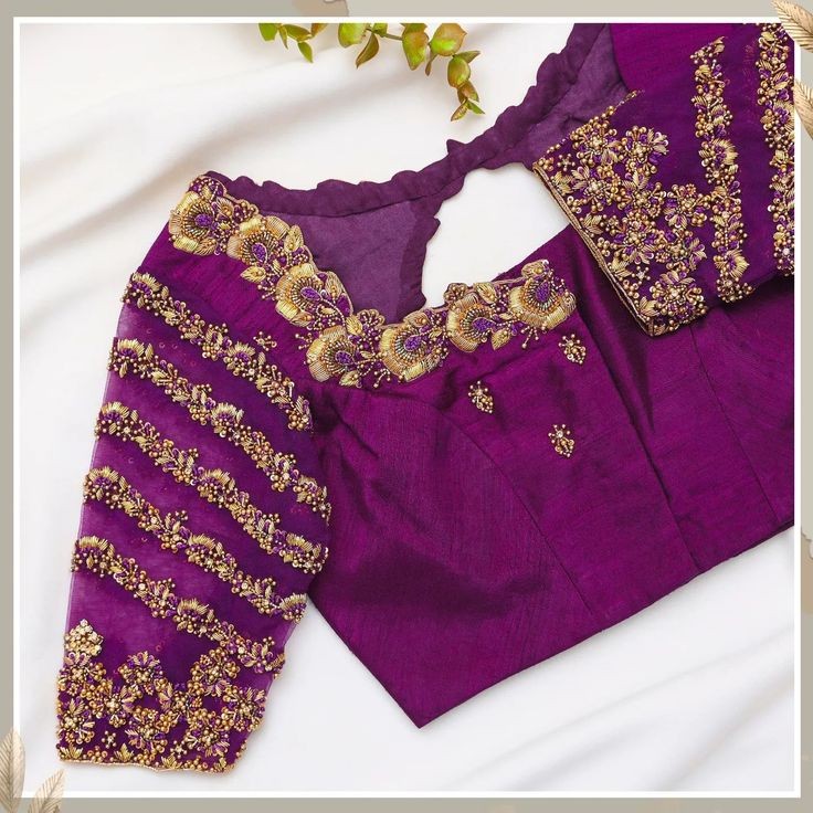 Stunning Raw Silk with Maggam Work blouse. Crafted for wedding and festive wear, pairs beautifully with silk sarees and lehengas.