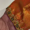 Designer Orange Raw Silk Wedding Blouse | High Neck Sugar Beads Aari Work
