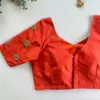 Introducing the stunning Designer Orange Saree Blouse – Handcrafted Maggam Work Buttis with Elegant V-Neckline. This exquisite blouse combines traditional craftsmanship with modern elegance, making it a perfect addition to your ethnic wardrobe.