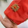 To maintain the beauty of your Designer Orange Saree Blouse – Handcrafted Maggam Work Buttis with Elegant V-Neckline, we recommend dry cleaning. Avoid direct sunlight to preserve the vibrant colors and intricate details.