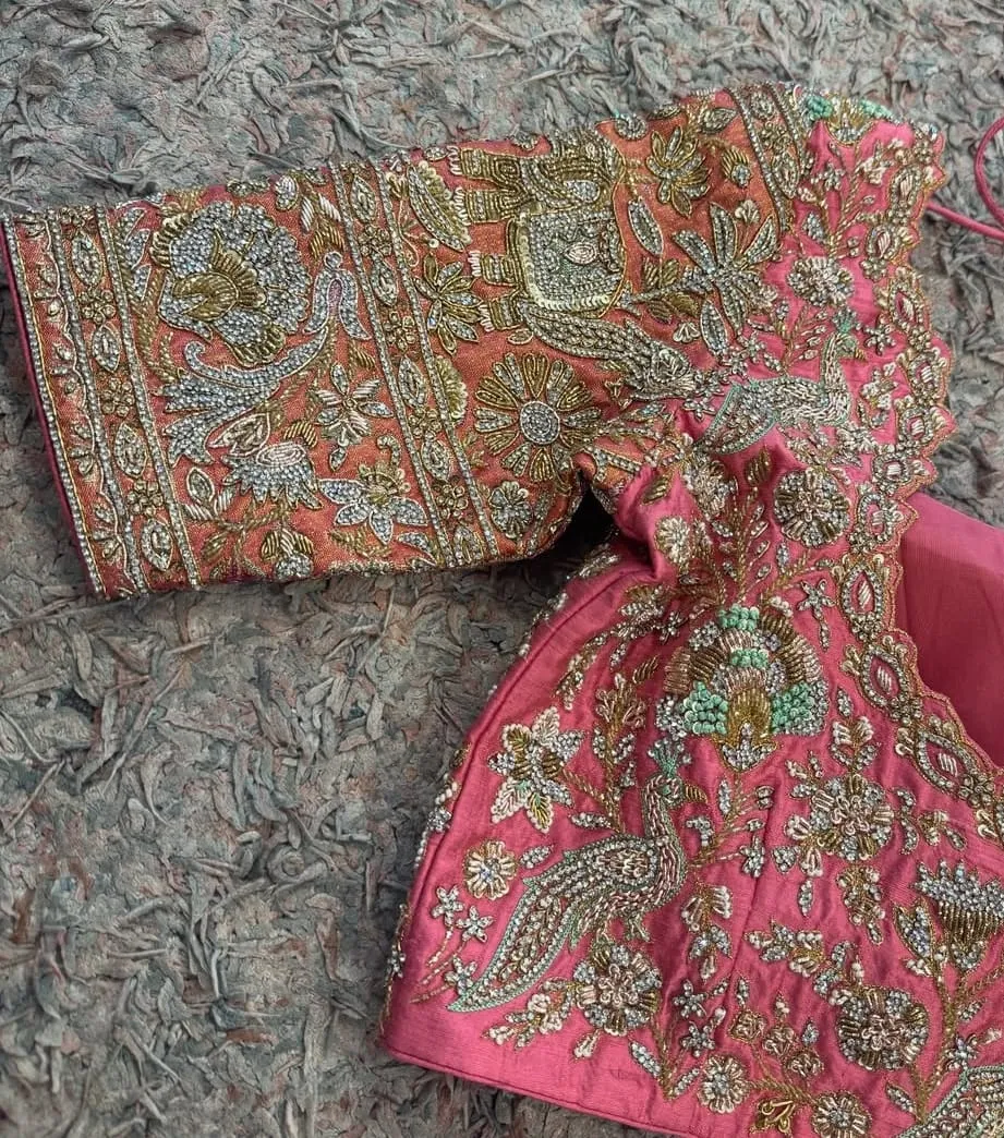Why Choose Designer Peach Peacock Bridal Blouse Exclusive Maggam Work for Weddings?