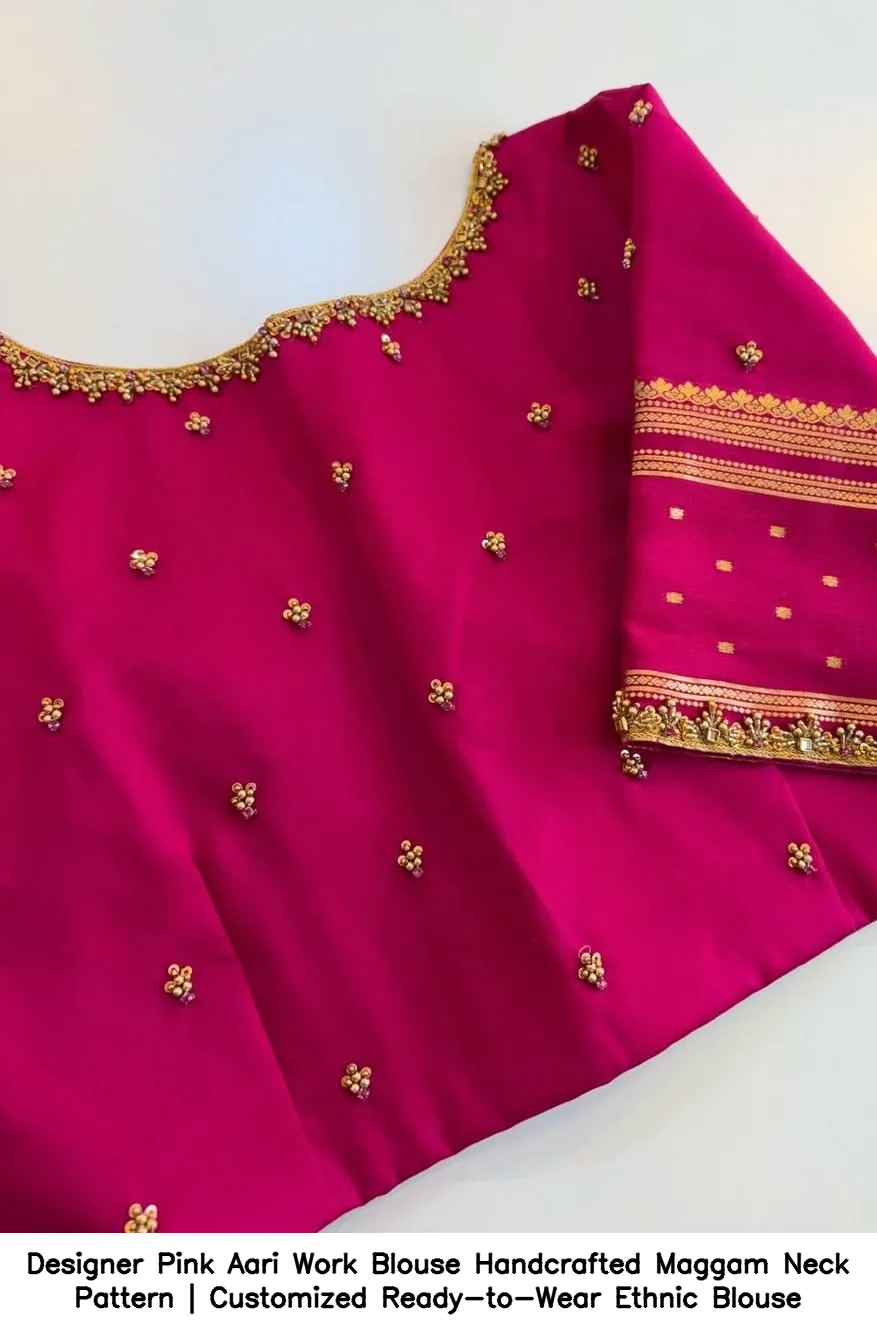Designer Pink Aari Work Blouse – Handcrafted Maggam Neck Pattern | Customized Ready-to-Wear Ethnic Blouse