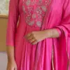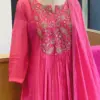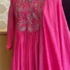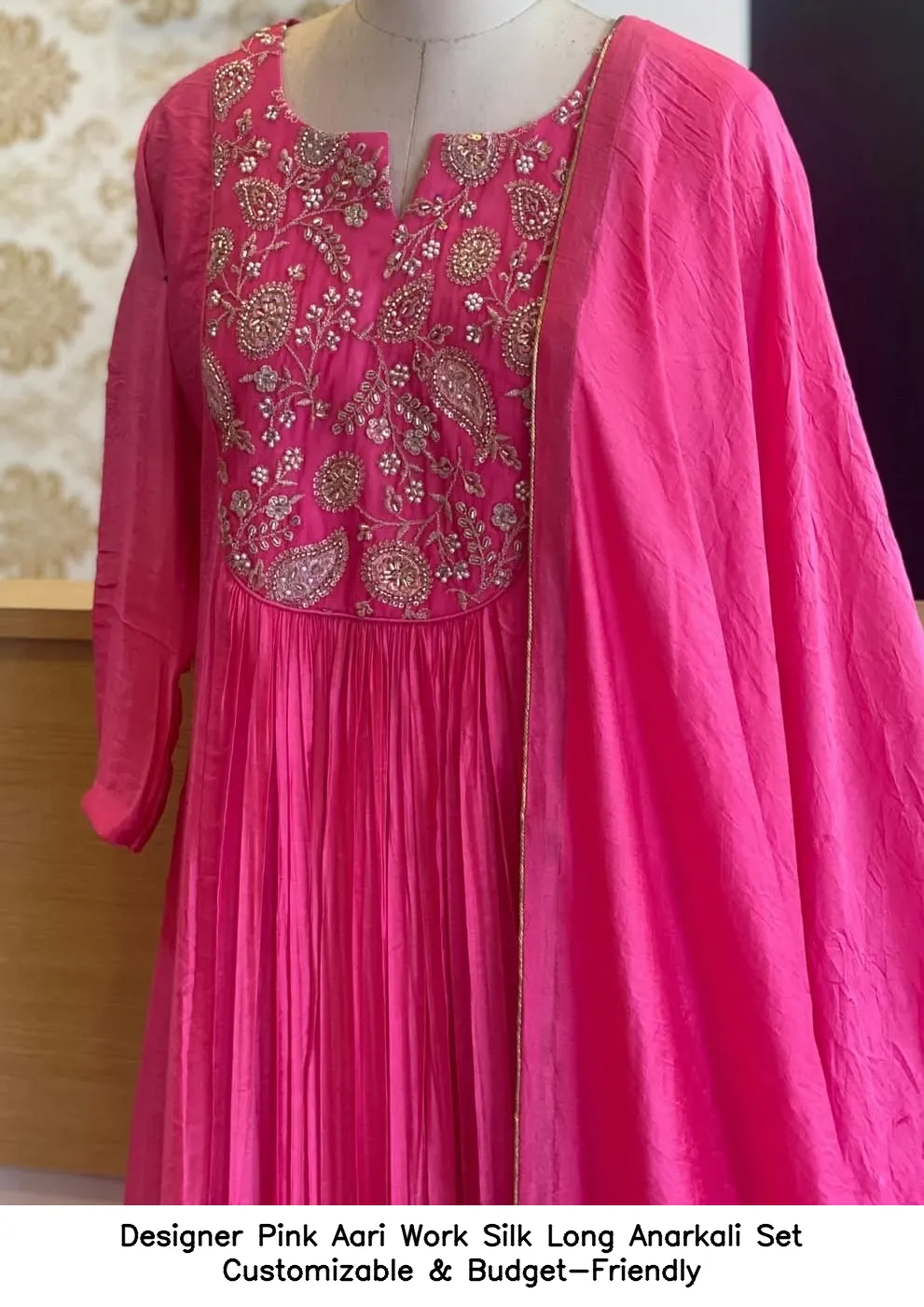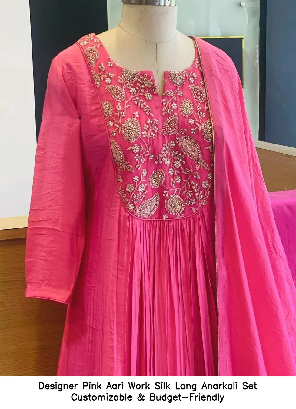 Product Name: ​​​Designer Pink Aari Work Silk Long Anarkali Set – Customizable & Budget-Friendly