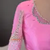 Product Name: Designer Pink Silk Aari Work Blouse with Net Cutwork Back & Dori Beads