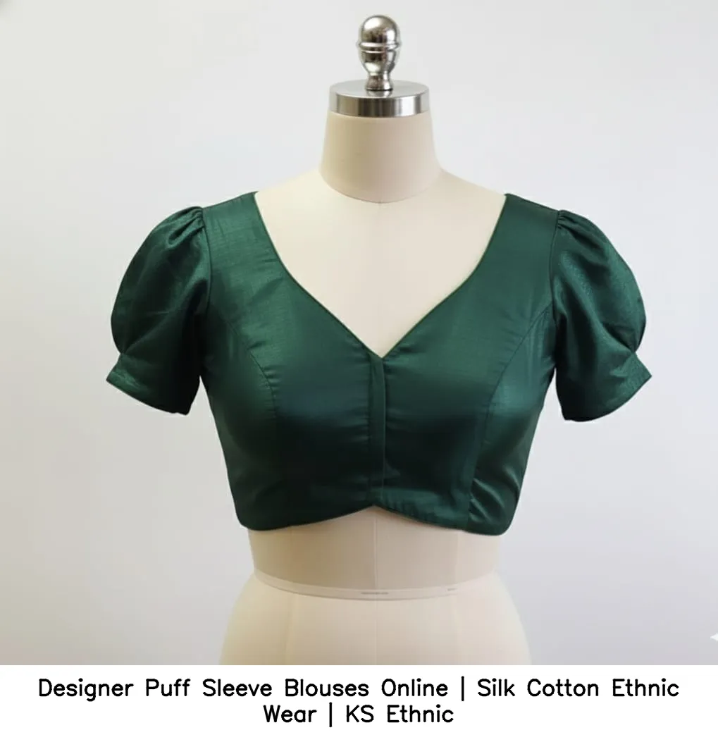 Designer Puff Sleeve Blouses Online | Silk Cotton Ethnic Wear | KS Ethnic offer unique styles and comfort. These blouses enhance your ethnic collection effortlessly. Moreover, they are perfect for various occasions, making you stand out.