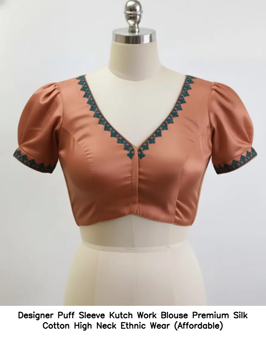 ​Designer Puff Sleeve Kutch Work Blouse – Premium Silk Cotton High Neck Ethnic Wear (Affordable)