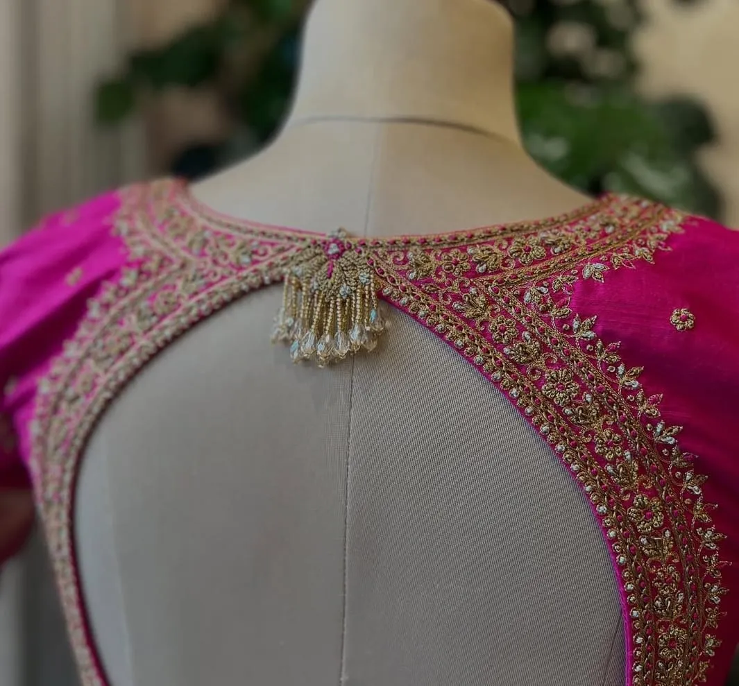 Rani Pink Zardosi Blouse Grand Wedding Maggam Work Affordable Custom Fit Features and Benefits