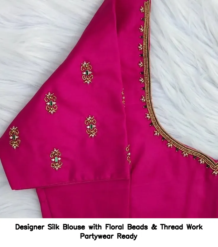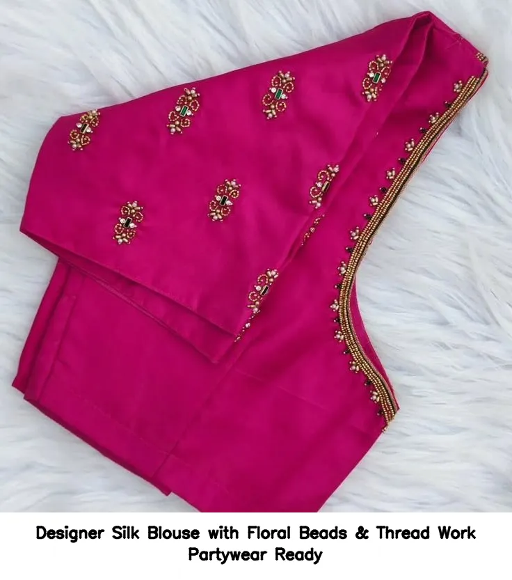 Why Choose Designer Silk Blouse with Floral Beads & Thread Work – Partywear Ready?
