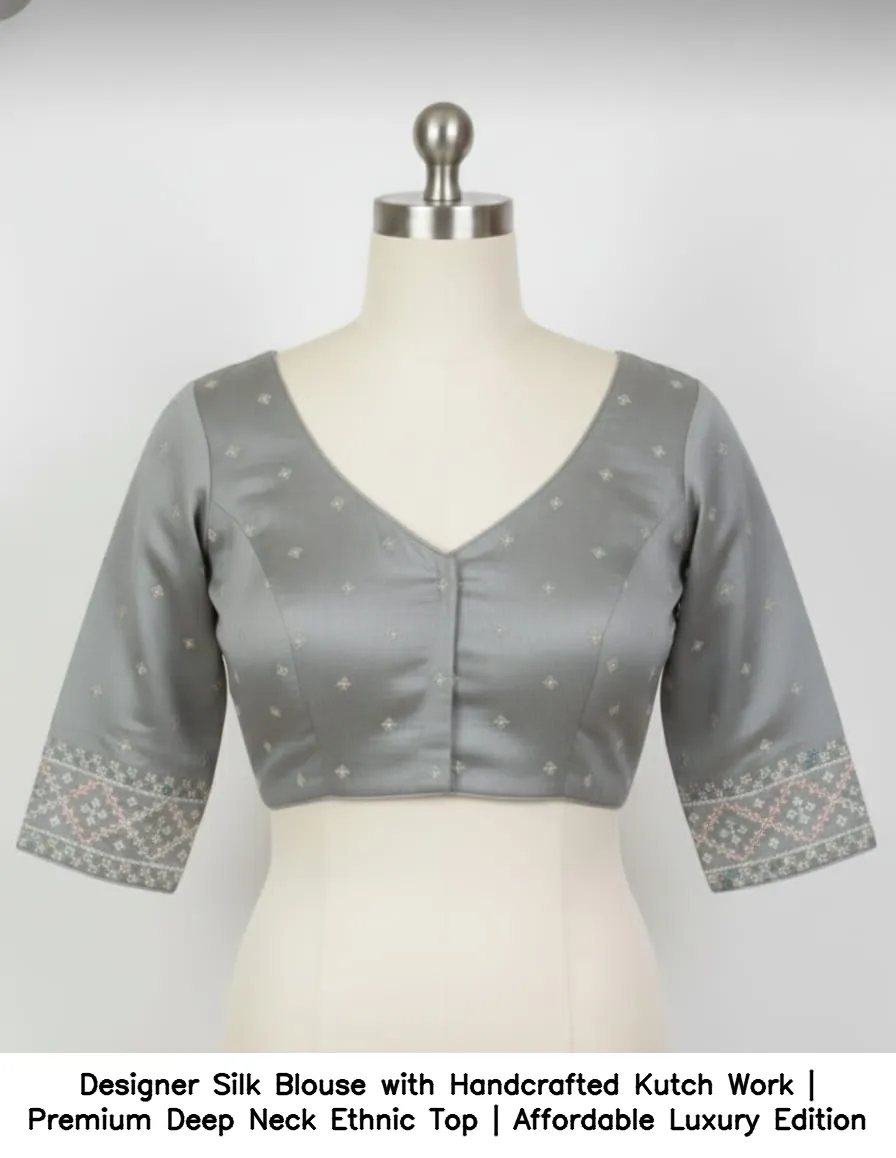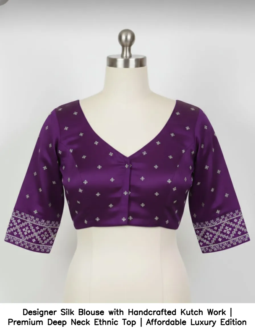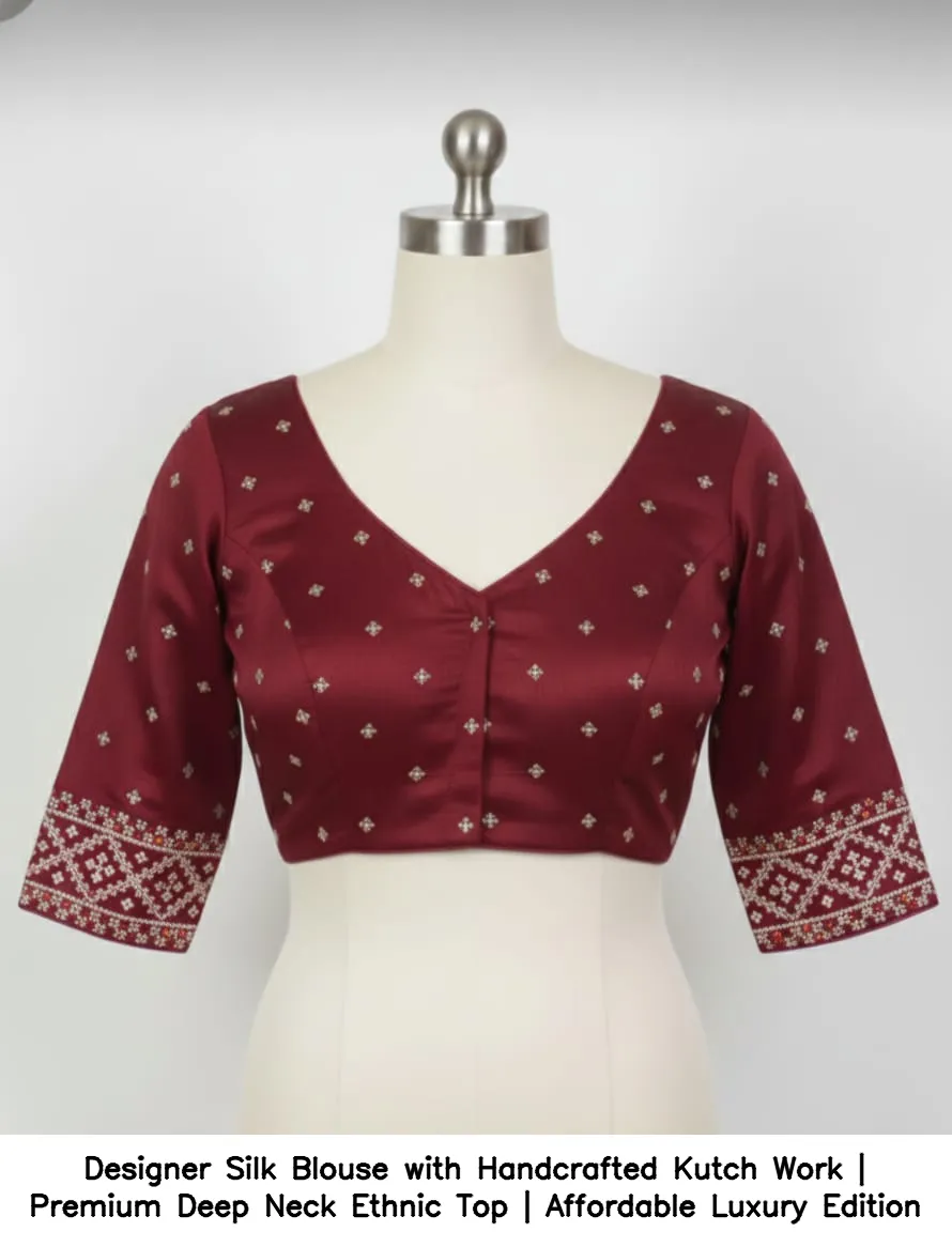 Why Choose Designer Silk Blouse with Handcrafted Kutch Work | Premium Deep Neck Ethnic Top | Affordable Luxury Edition?