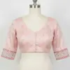 A: We use high-quality silk for a luxurious feel. The handcrafted Kutch work adds unique elegance, ensuring a beautiful and durable blouse.